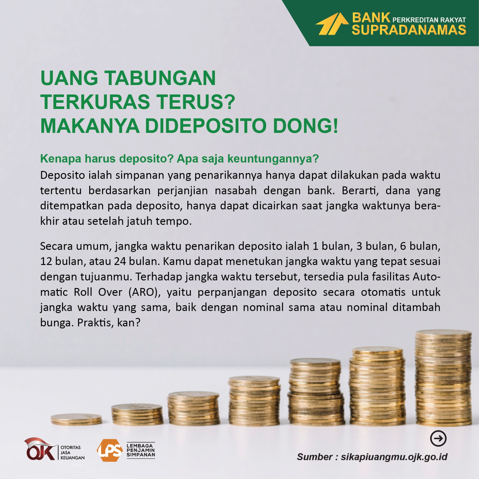 UANG TABUNGAN ‘TERKURAS’ TERUS? MAKANYA DIDEPOSITO DONG!